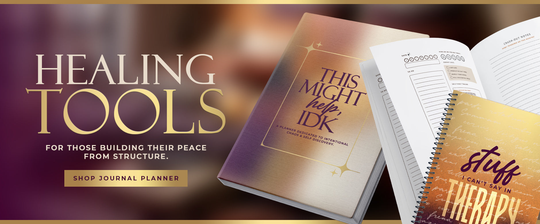 We believe healing should feel real—not performative. Our products and podcast meet you where you are, whether you’re setting boundaries, burning sage, or spiral-texting your therapist mid glow-up.
